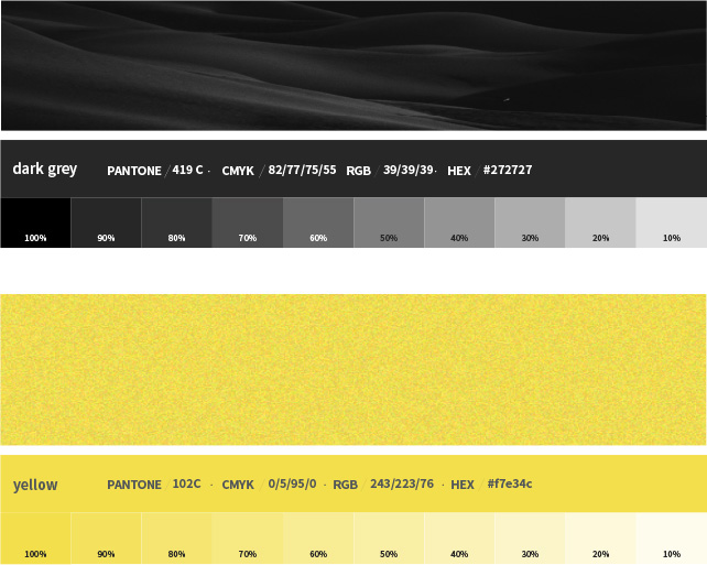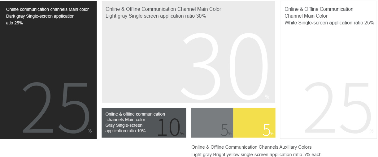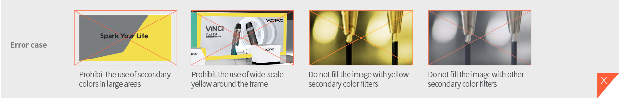 The main color of VOOPOO are black gray and light gray. At the same time, in order to make the brand image unified and full of changes, and adapt to the needs of different scenes, "yellow" is specially selected as the embellishment, which is used in conjunction with the main color of the brand. When using spot color data, four-color data, and RGB data, it must be presented in accordance with standard color specifications. Under no circumstances can the colors and proportions be changed.
